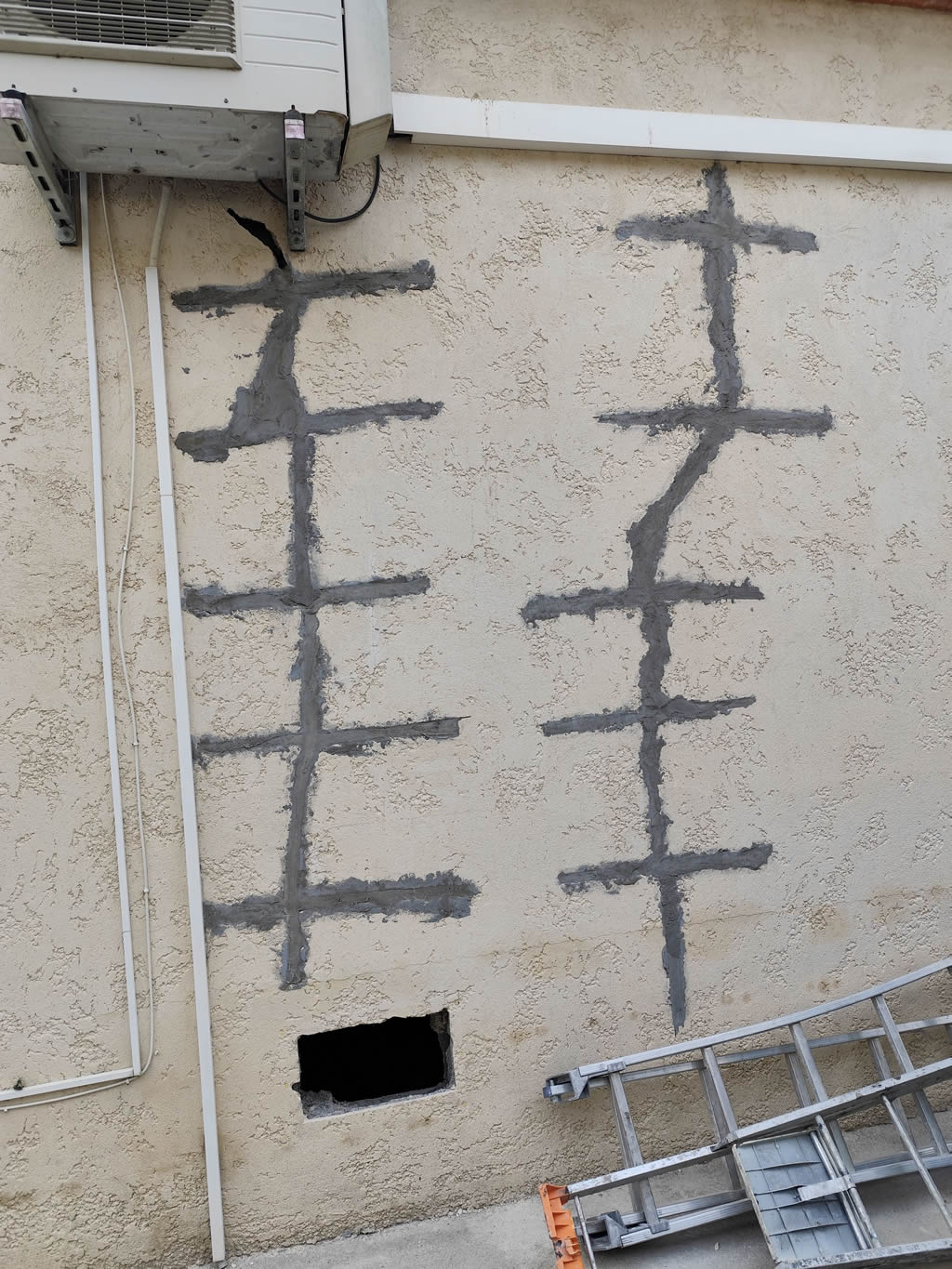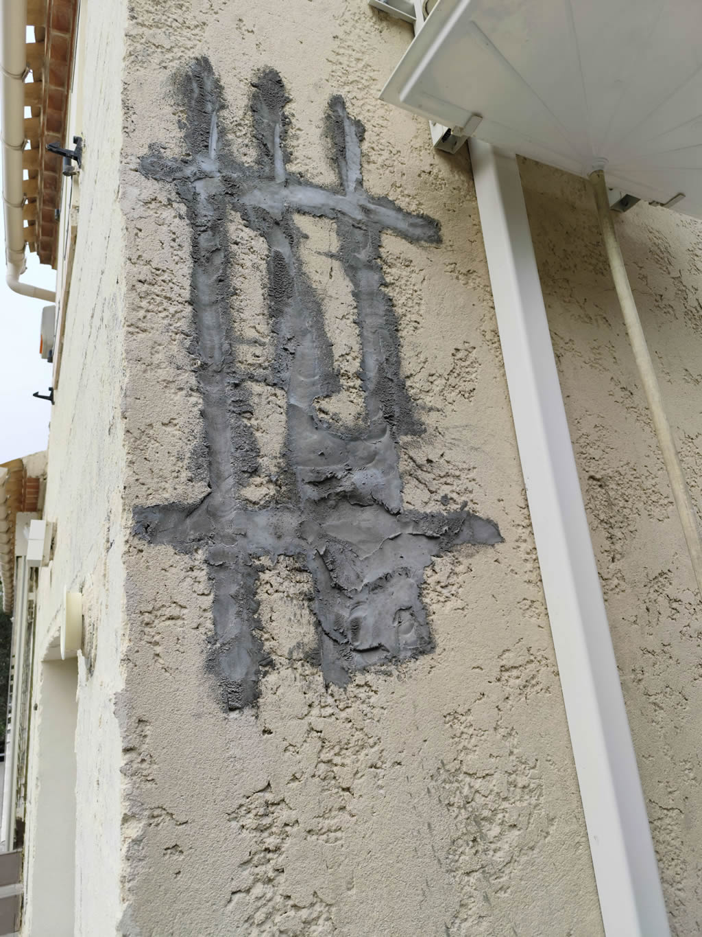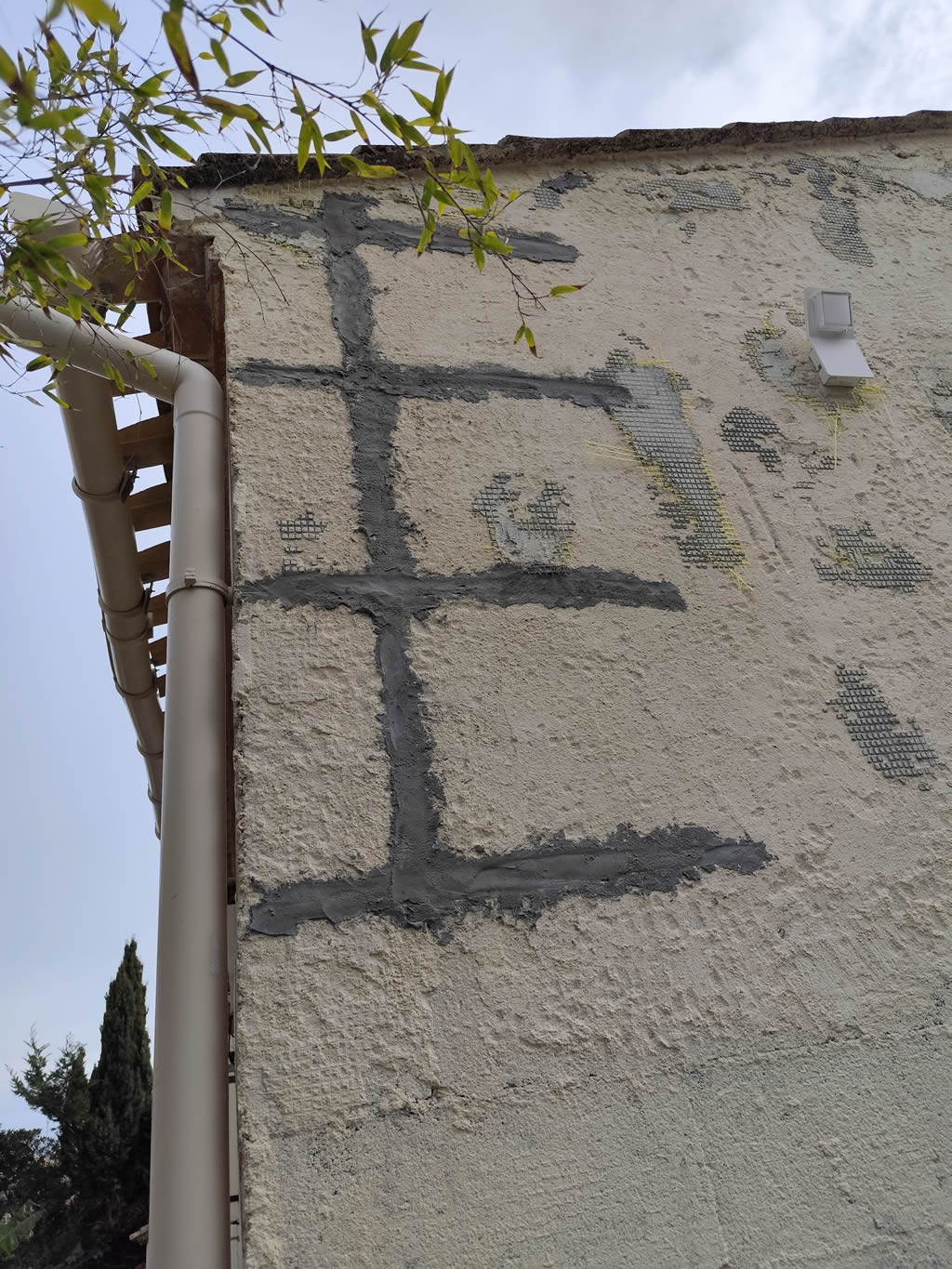 fissure d_angle en cours de reparation methode harpage matage enduit