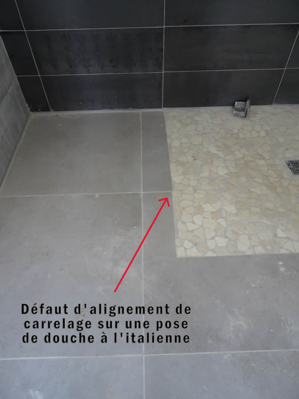 defaut d_alignement de carrelage sur une pose de douche a l_italienne